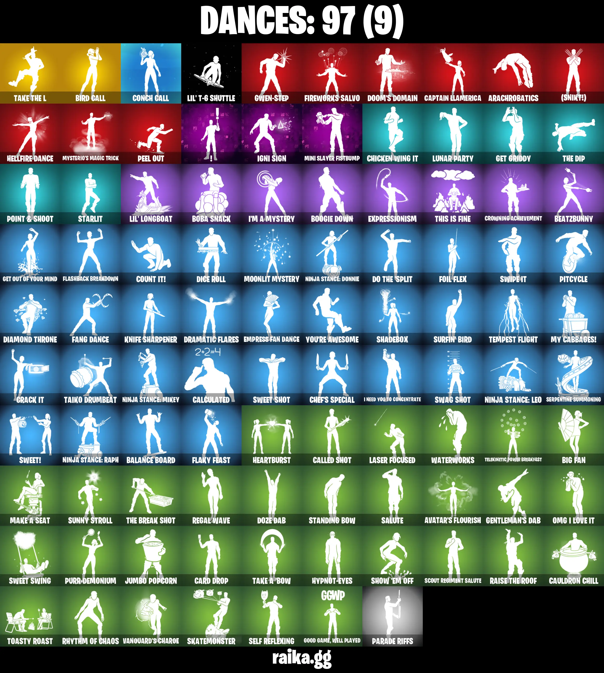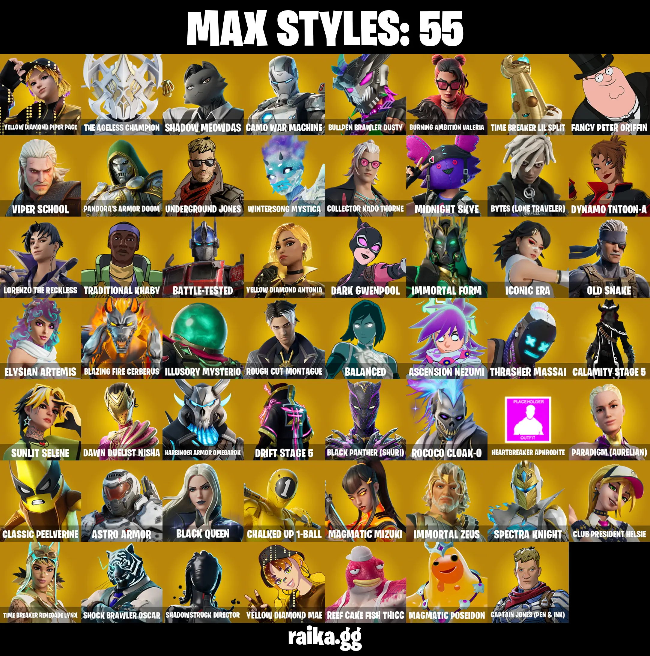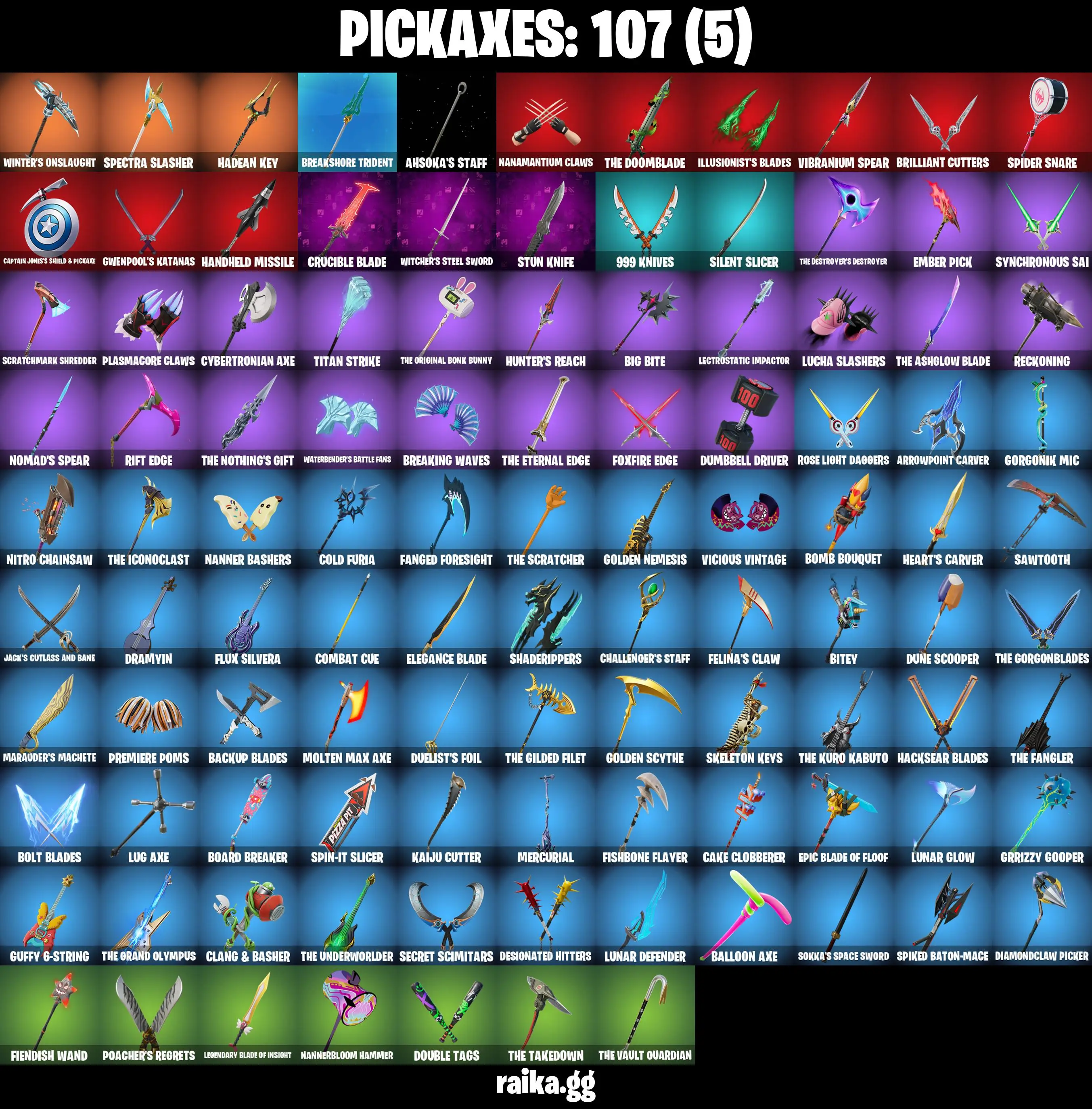 PC/PSN/XBOX |103 skins | Take The L | Mako | Bird Call | Battle Bus | Drift | The Ageless | Mizuki | Optimus Prime | Kado Thorne |